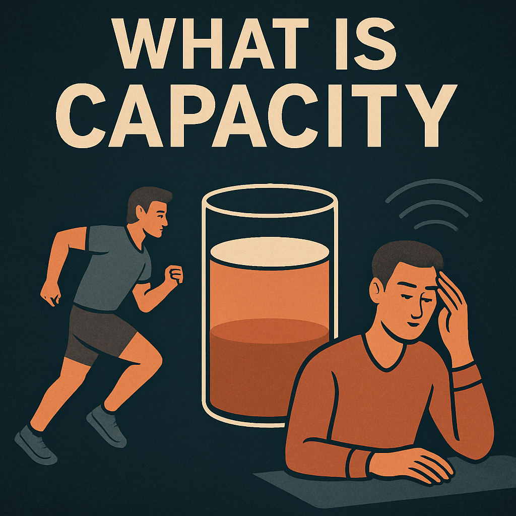 Capacity is your ability to handle and recover from stress. Physically, it’s how much work your body can take on, adapt to, and come back stronger from. Mentally, it’s the bandwidth you have to stay focused, make decisions, and manage pressure without slipping into overwhelm or reactivity.