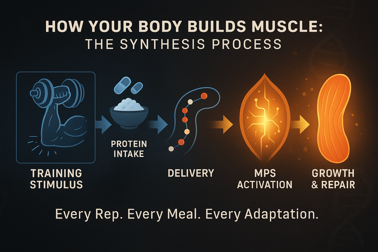 - Biologically, synthesis drives growth. After a workout, your body enters anabolism, a building state. Muscle fibers torn from effort begin repairing and growing stronger through muscle protein synthesis (we’ll break that down in Michael’s Training Corner).